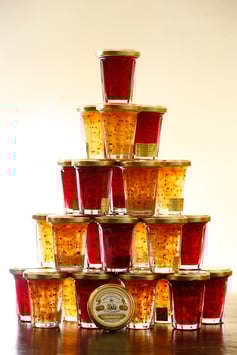 • Add some of our hand seeded redcurrant jam to vanilla ice cream then sprinkle with flaked almonds.
